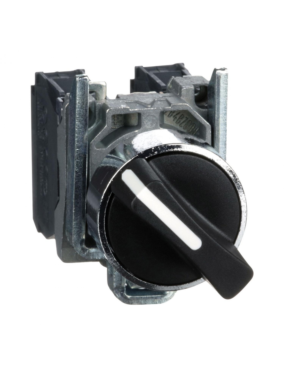 Harmony XB4 - bouton tournant - à manette - noir - Ø22 - collerette dépassante - métal chromé - 2 positions - fixes - 1O+1F - fixation Ø22 - raccordement par vis-étrier