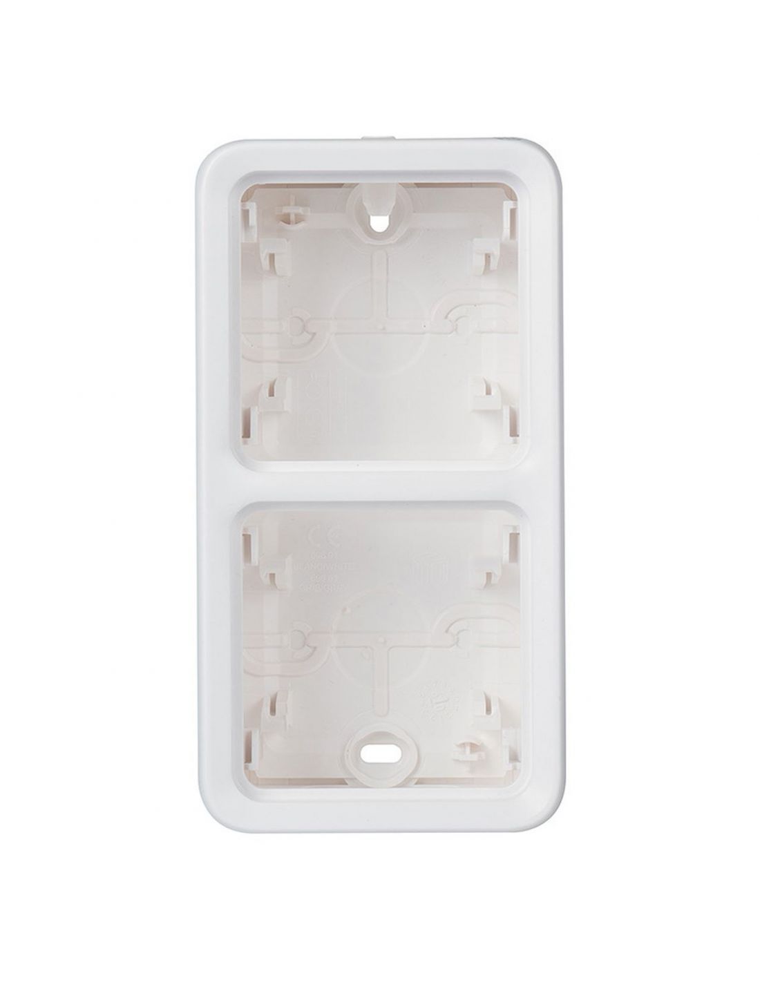 Boîtier 2 postes verticaux avec embouts à membrane, amovibles perforables sans découpe pour montage en saillie de mécanisme Plexo composable IP55 IK07 finition blanc Artic antimicrobien - avec fixations accessibles embouts montés