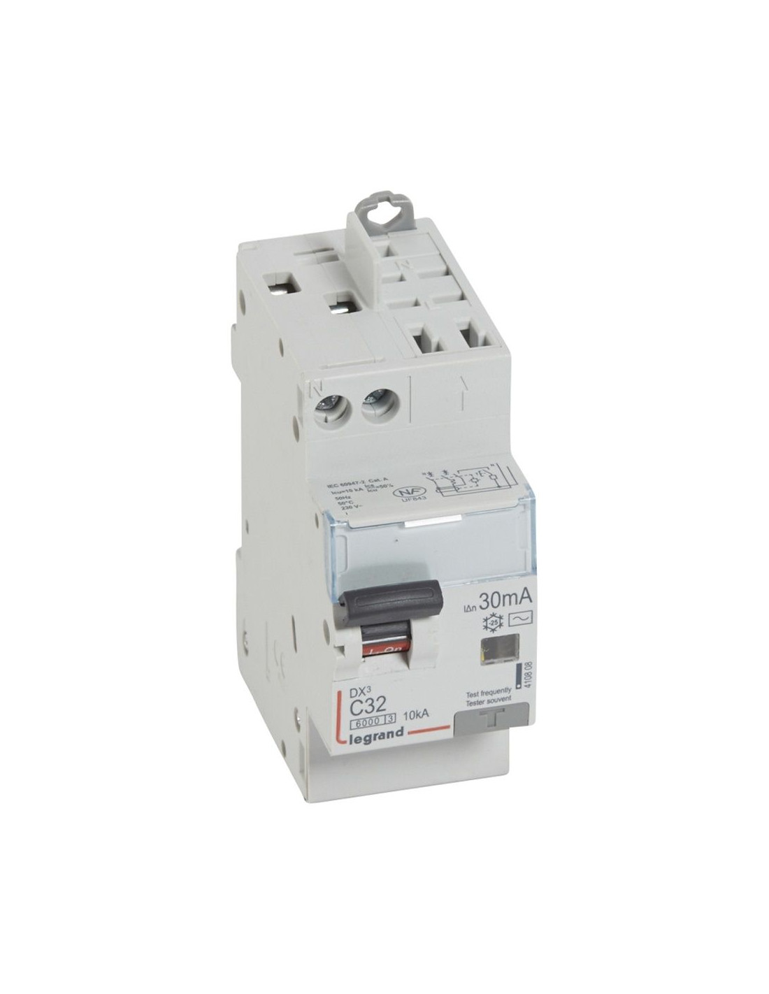 Disjoncteur différentiel monobloc DX³6000 10kA arrivée haute vis départ haut auto U+N 230V~ 32A type AC 30mA LEGRAND 410808