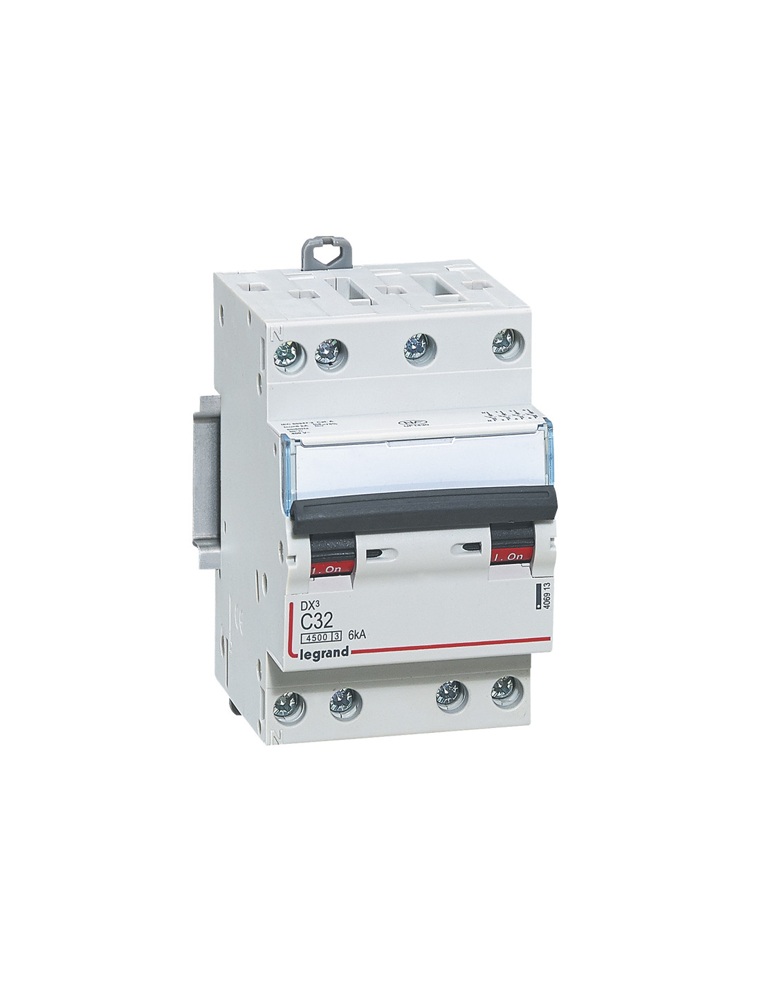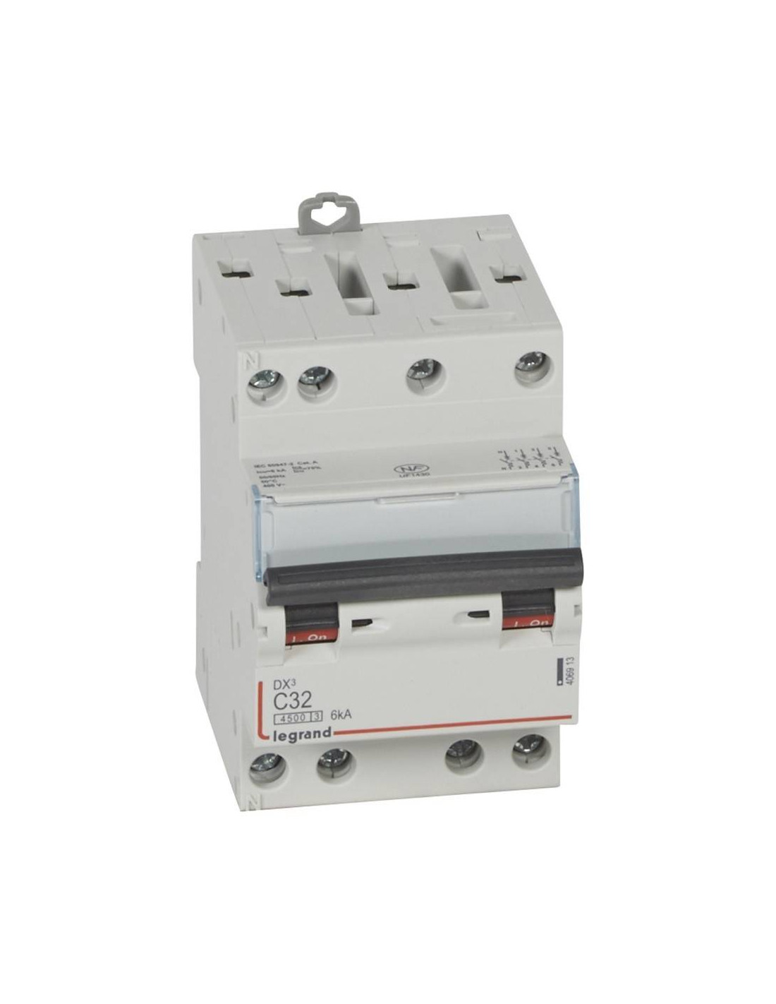 Disjoncteur DX³4500 6kA arrivée haute et sortie basse par borne à vis tétrapolaire 400V 32A courbe C 3 modules LEGRAND 406913