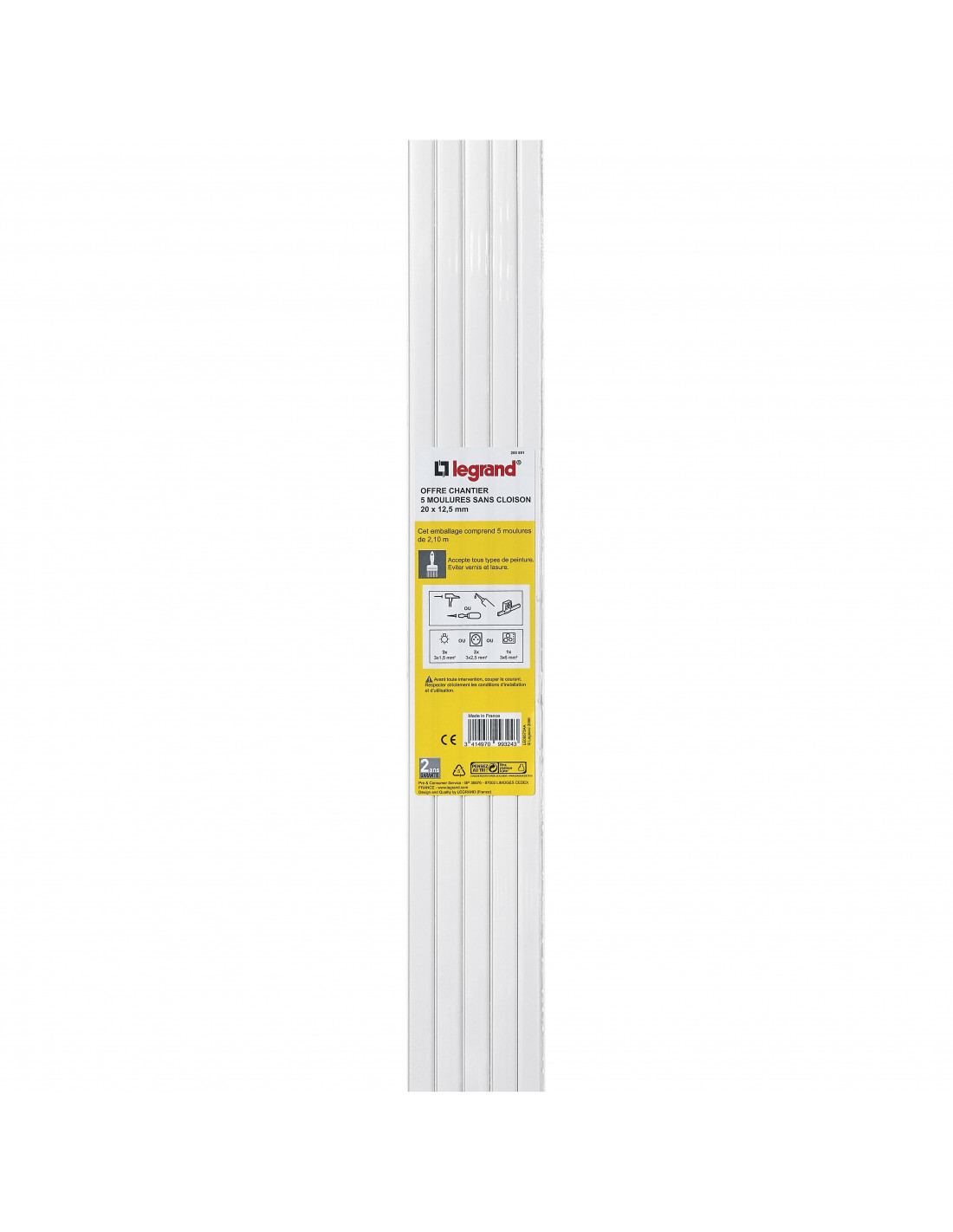 Lot de 5 moulures de 20x12,5mm sans cloison blanche LEGRAND 200891