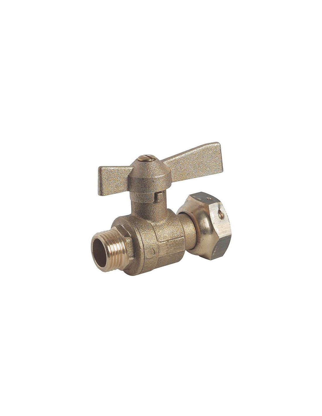 Modèle court - Longueur hors écrou 67,5mm - Entrée mâle 15/21 - Sortie écrou prisonnier femelle 20/27 - Bille pleine PN40 - Ecrou plombable
