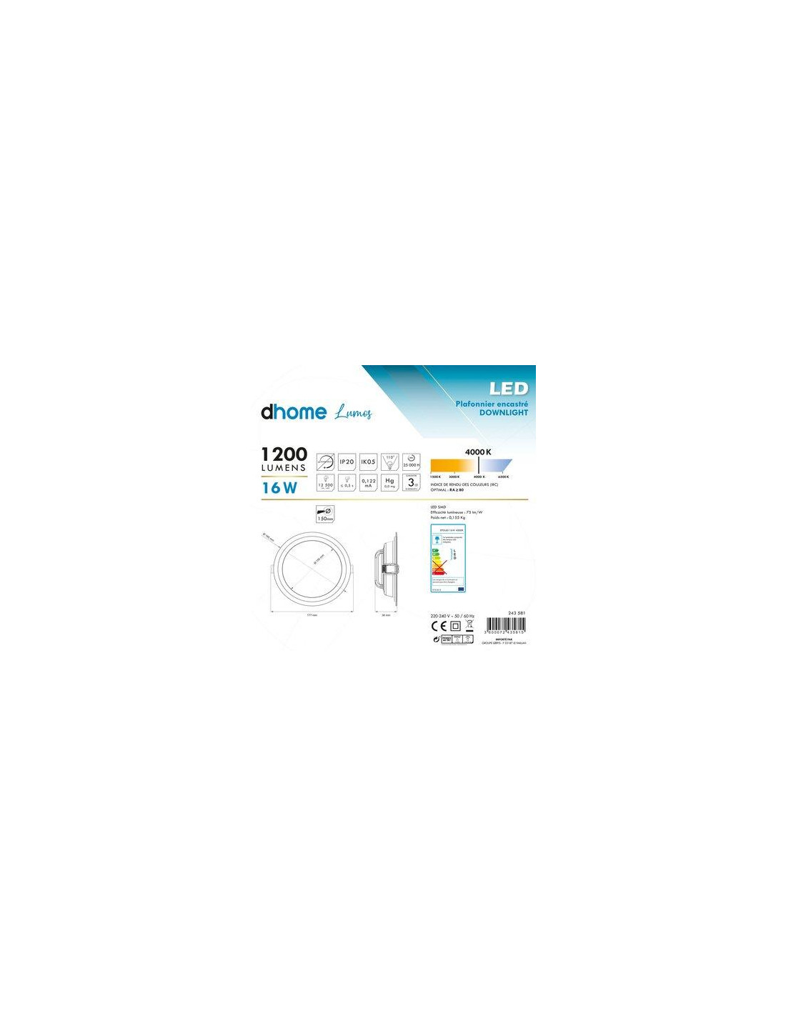 LUMOS ENCAS. D165 4000K IP20 DHOME EPDL60/EU