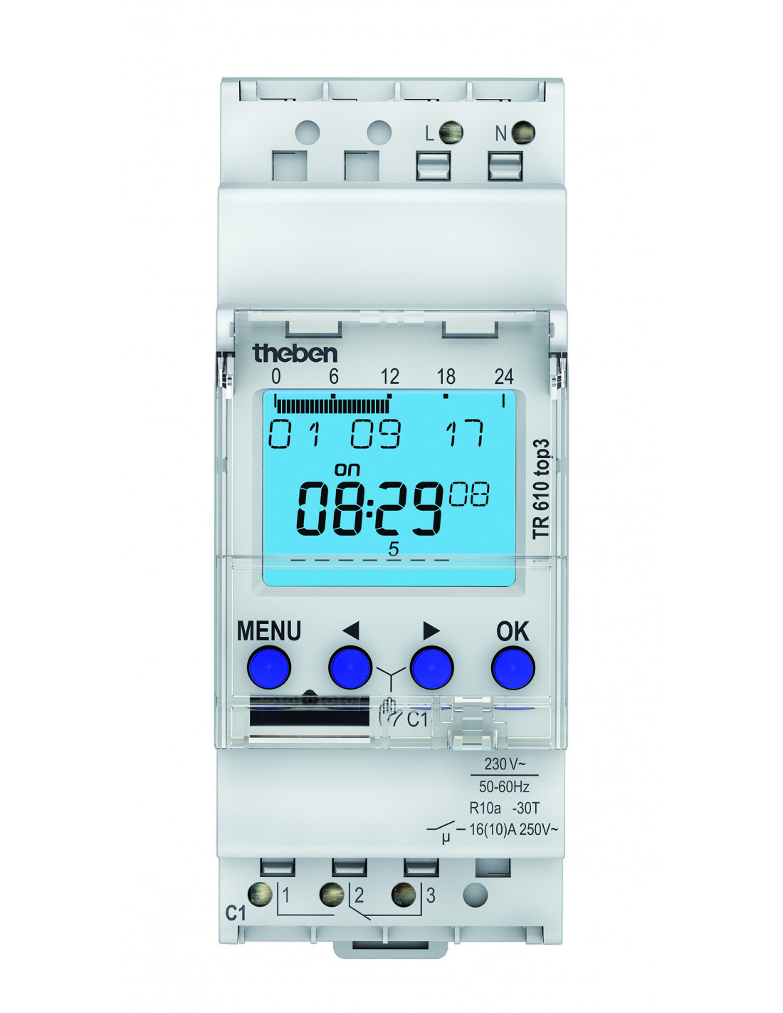 Horloge hebdomadaire digitale 24h 7j 1 contact 230V. Prog OBELISK top 3 BLE THEBEN 6100403
